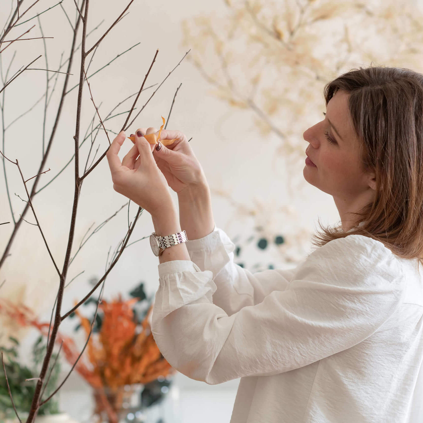 Ce travail patient, par superpositions et compositions, permet d’inscrire la nature dans la maison — ou dans des lieux professionnels — sans contrainte d’entretien, avec élégance et précision.