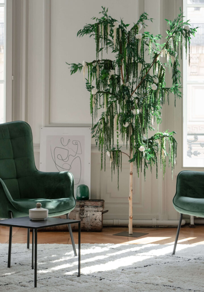Plus qu’un arbre décoratif intérieur, il incarne une vision : celle d’une nature réinterprétée, apaisante, intemporelle, capable de transformer un espace sans jamais l’envahir.