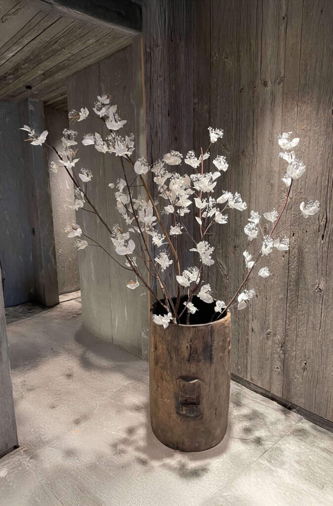 Je crée des arbres stabilisés pour l’intérieur, travaillés feuille à feuille, selon un procédé que j’ai développé pour atteindre une présence juste, sans contrainte d’entretien.